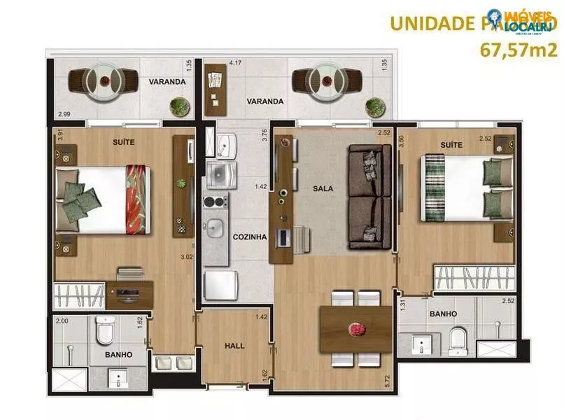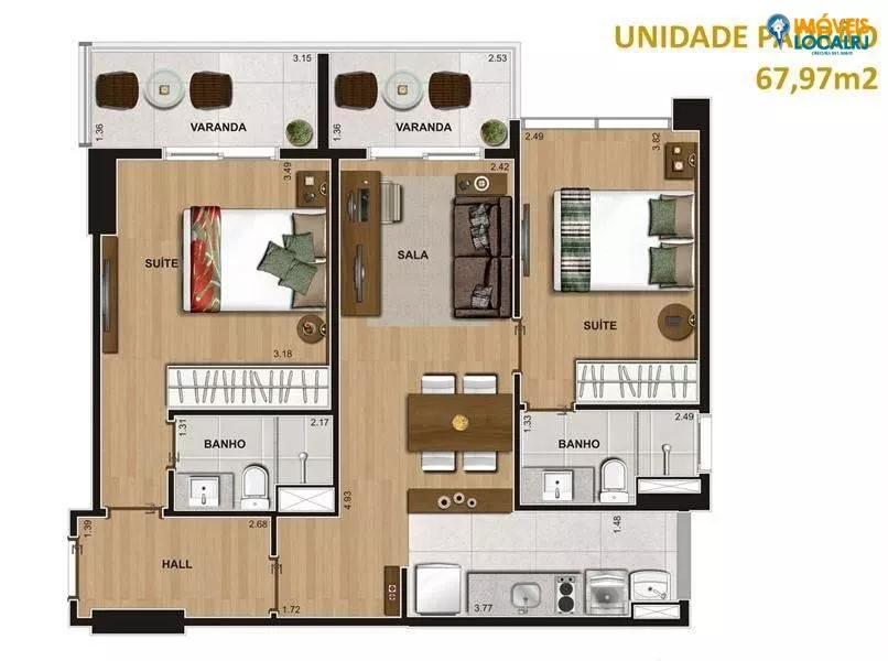 | Dormitórios: | (2) dormitório(s) sendo (2) suíte(s) | |