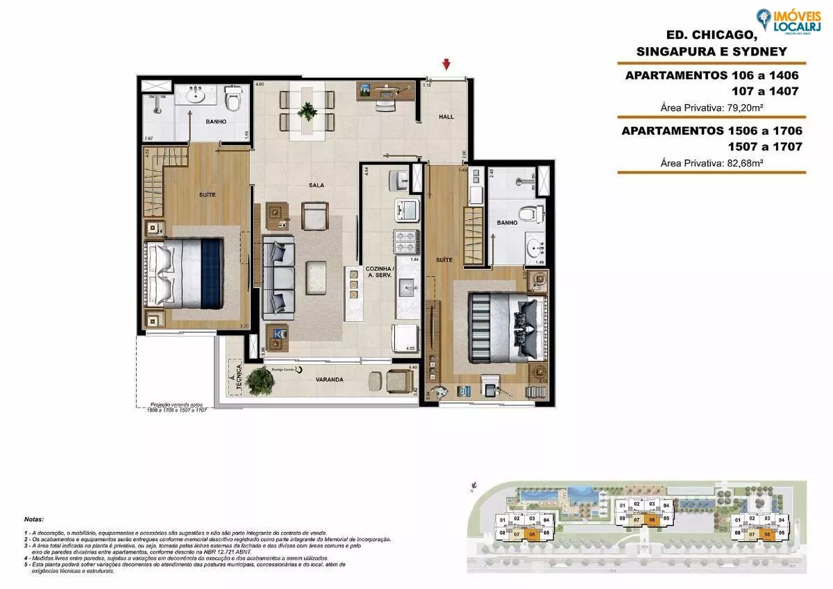 | Dormitórios: | (2) dormitório(s) sendo (2) suíte(s) | |