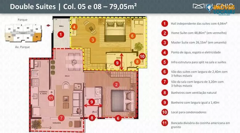 Millenio Double Suítes - Apartamentos 2 Quartos Double Suítes à venda na Vila Olímpica e Paraolímpica do Rio de Janeiro, Ilha Pura, Barra da Tijuca - RJ.