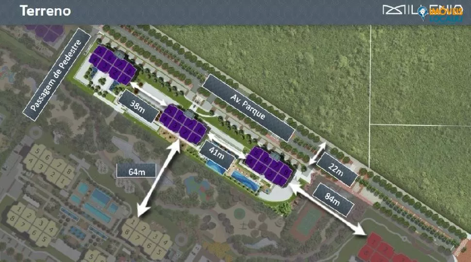 Millenio Double Suítes - Residencial com serviços composto de 4 edifícios, 408 unidades de 2 suítes (77 a 80m²), 419 vagas de garagem.