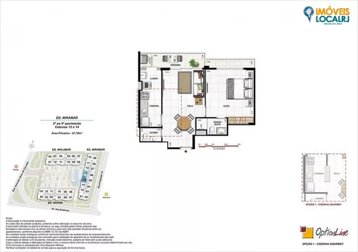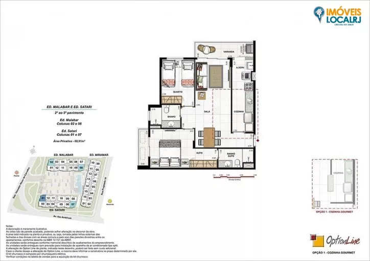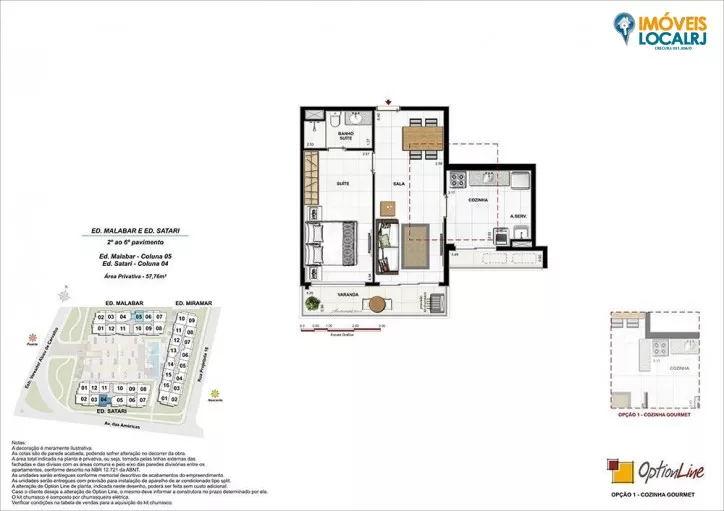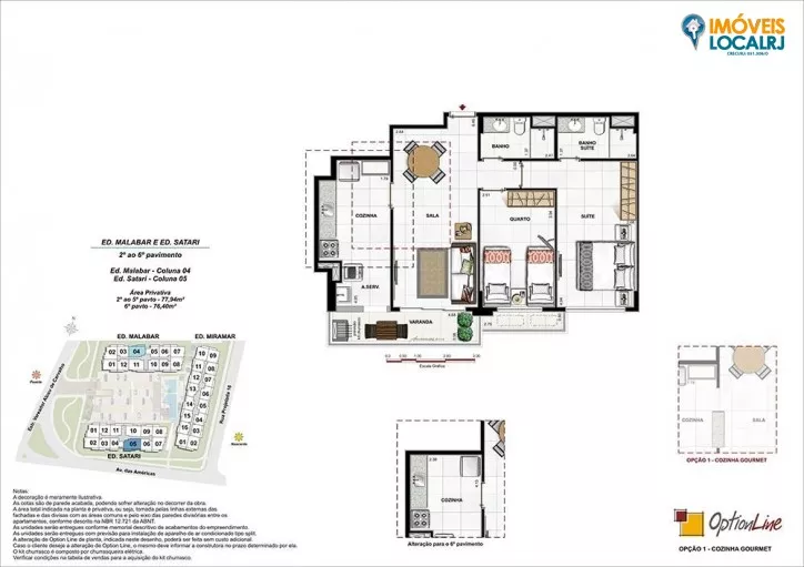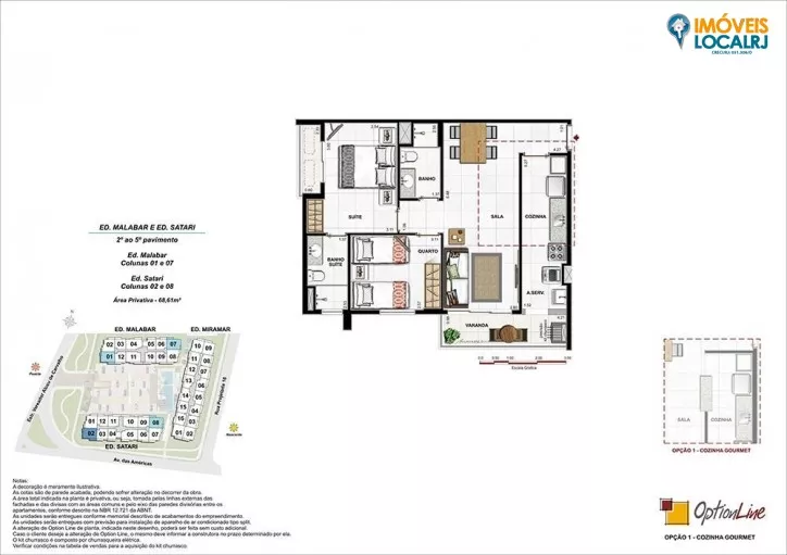 Número de edifícios: 3 blocos Unidades: 234 unidades (118 unidades de 1 quarto / 102 unidades de 2 quartos / 14 unidades de 3 quartos) Tipologia: apartamentos de 1 e 2 quartos e coberturas duplex de até 3 quartos Vagas: 1 vaga por unidade Área privativa das unidades: Garden Apartments de 1 quartos de 22,23 a 99,77 m²/ Garden Apartments de 2 quartos de 77,29 até 172,36 m² / Apartments de 1 quarto de 54,73 a 61,22 m² / Apartments de 2 quartos de 65,62 a 77,94 m² / Penthouses (coberturas duplex) de 2 quartos com 76,40 a 161,05 m² / Penthouses de 3 quartos de 130 a 163,18 m² Projeto de decoração: Fernanda Marques Arquitetos Associados As unidades de 2 quartos estão localizadas nas pontas dos blocos, e nas colunas 5 e 6 do edifício Satari (bl. 3) e nas colunas 4 e 11 do edifício Malabar (bl. 1). 70% das vagas serão localizadas no subsolo. Infraestrutura e segurança: Nas áreas Comuns: Automação das cancelas de acesso Automação dos portões de acesso Sistema para controle de acesso com cadastro de proprietários e visitantes em banco de dados Sistema para controle de acesso de veículos através de tag Infraestrutura para internet wireless nas áreas comuns de lazer (Business Center, Salão de Festas e Fitness) Infraestrutura para sistema de ar condicionado do tipo split nas área comuns de lazer (Business Center, Salão de Festas e Fitness) Infraestrutura para som ambiente nas áreas comuns sociais (Salão de Festas e Fitness) Sistema para monitoramento dos acesso principais do empreendimento (CFTV) Infraestrutura para segurança 24h Sistema de segurança perimetral com sensores infravermelhos Sistema de abertura automática de porta social das portarias de acesso (através de interfone) Central de telefonia tipo PABX Área técnica para grupo gerador de energia Nas unidades autônomas: Infraestrutura para cabeamento de internet, TV por assinatura e telefone Infraestrutura para instalação de ar condicionado do tipo split nas salas e quartos Laje técnica para condensadores remotos de ar condicionado Consciência ecológica: Compartimento para coleta seletiva de lixo Iluminação com sensor de presença nas áreas técnicas e de serviços como lixeiras, halls de serviço e depósitos e também nos halls sociais Iluminação otimizada nas garagens através de circuitos independentes Previsão para instalação de medidores individuais de água por apartamento Torneiras economizadoras de água nas copas e sanitários das áreas comuns Utilização de madeira legalizada Caixa de descarga com racionalização de consumo de água, com duas vazões de descarga, nas áreas comuns e nas unidades autônomas Bicicletário no subsolo Oportunidade: Apartamento todo entregue mobiliado (nos quartos, sala, cozinha e banheiros)* Apartamento todo entregue em porcelanato 60x60 (nos quartos, sala, circulação, varandas e terraço)* Serviço Option Line* 1 Ano de Sky Grátis Serviços: Central de Arrumação e Limpeza (pay-per-use) Central de manutenção e reparos para as unidades autônomas pay-per-use) Vestiário de funcionários