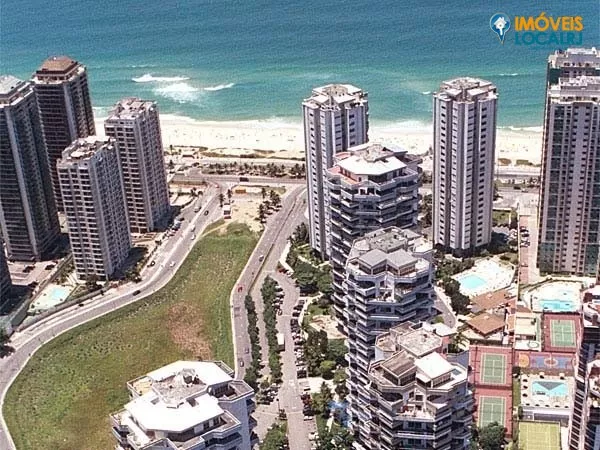 ATLÂNTICO SUL condomínio com muita segurança na Praia da Barra com infraestrutura total. Quadras de tênis, poliesportiva, bocha, espaço gourmet, 2 salões de festa, piscinas aquecida etc. Amplo estacionamento para visitantes. Cobertura duplex com Vista Indevassável para o mar, as montanhas e a pedra da Gávea 5 quartos sendo 4 suítes, living muito espaçoso, varandão, terraço com 120m² Melhor localização, em frente a praia e ao lado da ponte Lucio Costa que liga até as Américas Em 5 min. esta nos Shoppings Downtown e Citta.