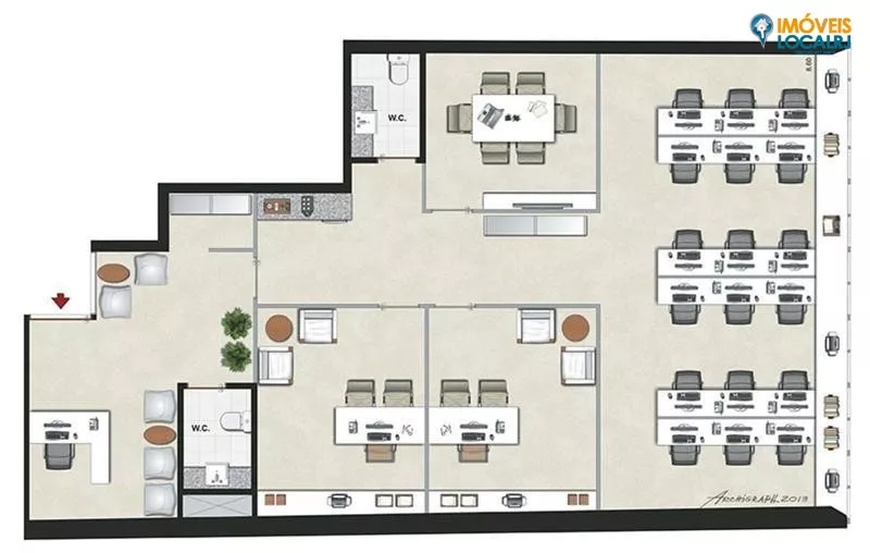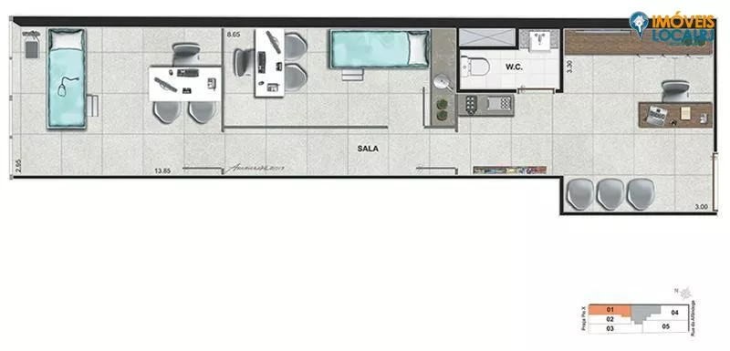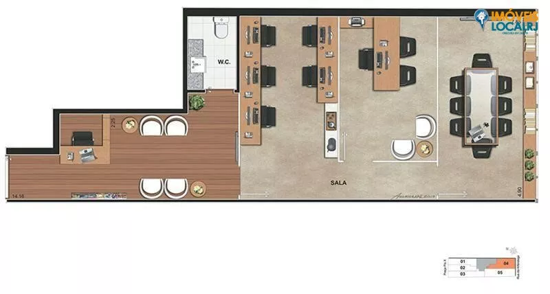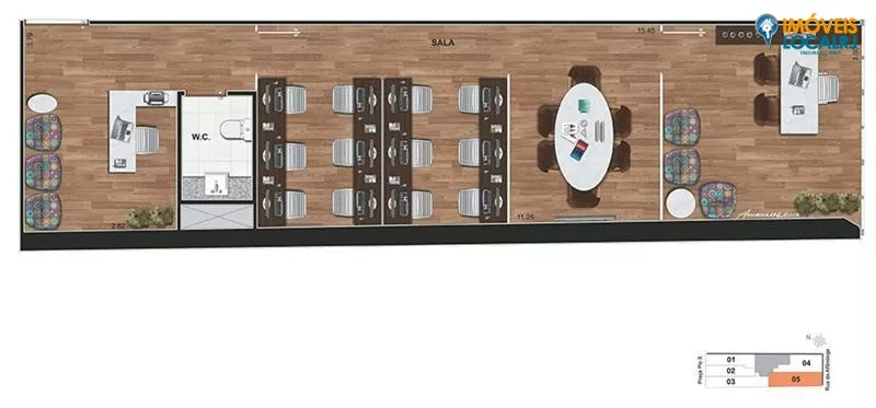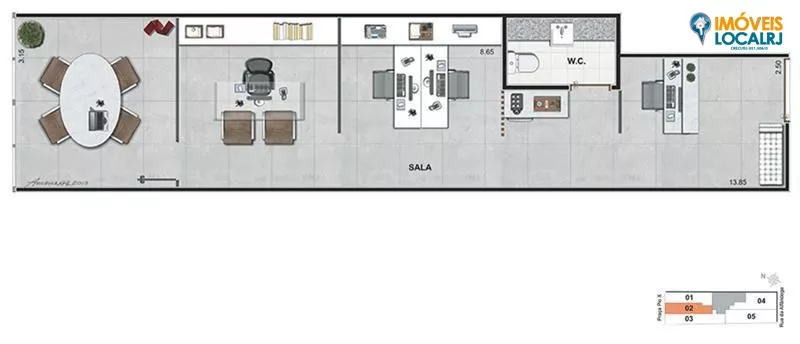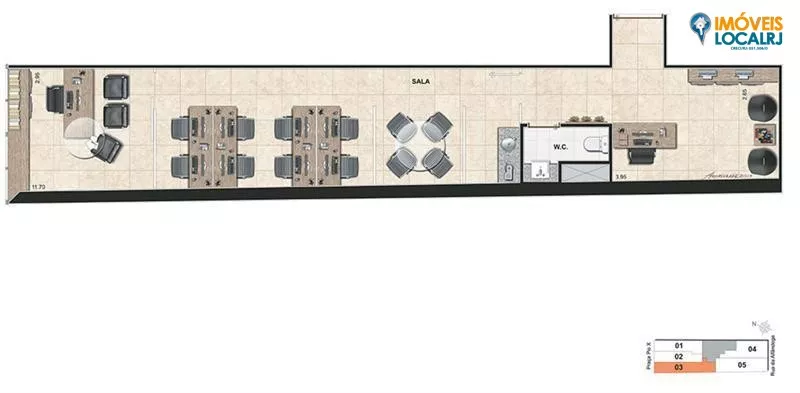 O Latitude Rio de Janeiro é composto por 55 salas comerciais de 44m² a 61m², com junções de até 270m² e flexibilidade através das junções, criando espaços mais amplos integrados e lineares.
