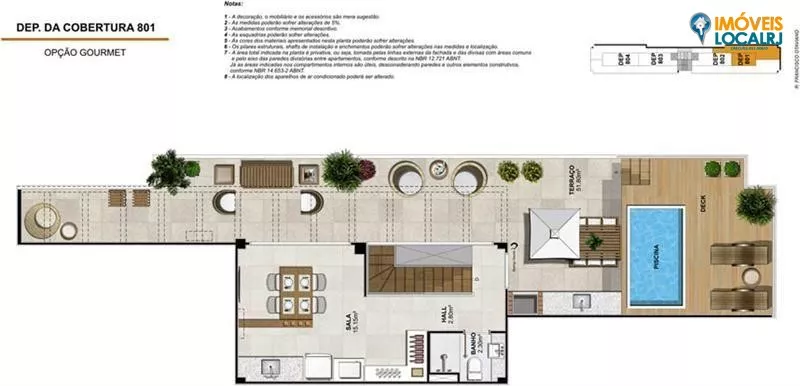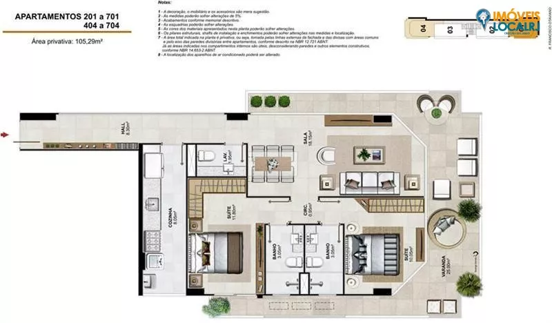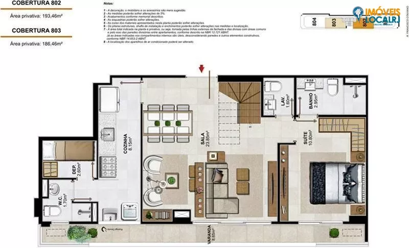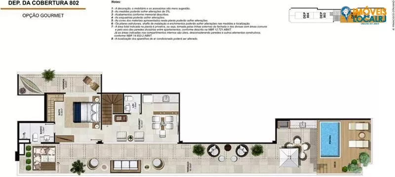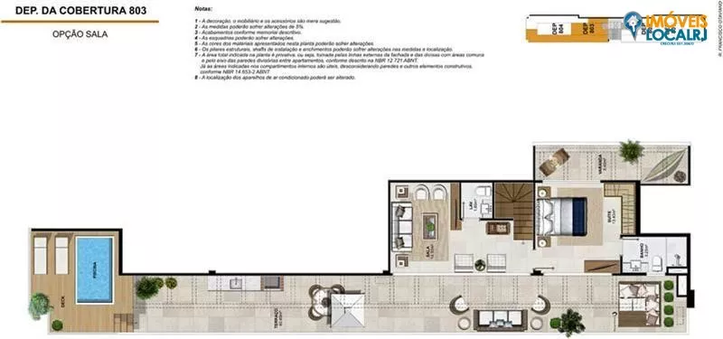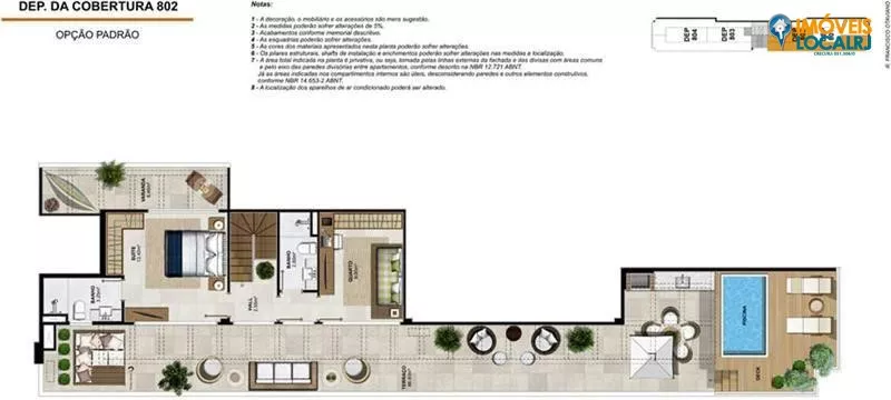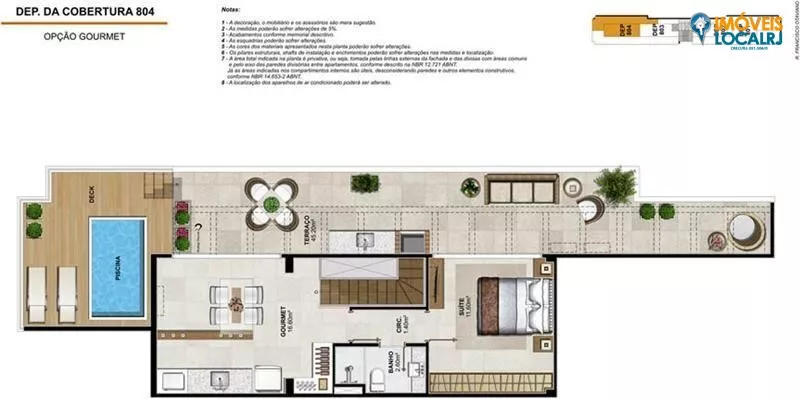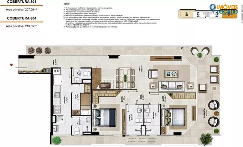 Coberturas Duplex com 3 suítes + dependência(186,46 a 213,65m²).