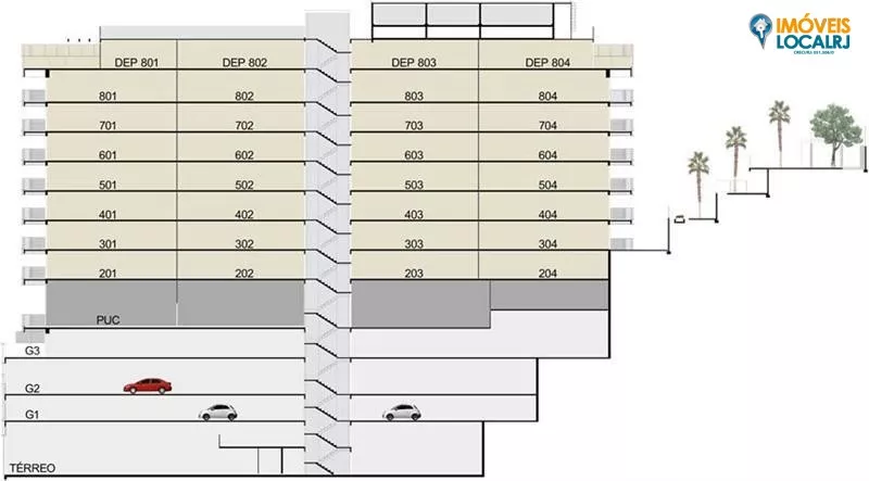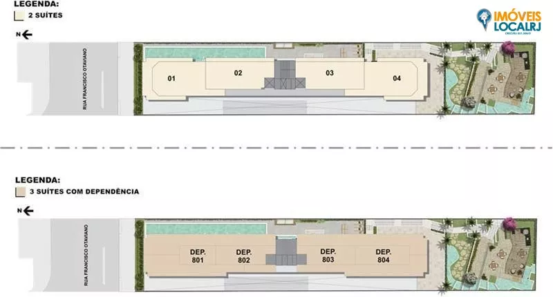 Apenas 1 bloco, com 14 pavimentos e 4 apartamentos por andar. Aptos.tipo com 2 suítes(80,00 a 105,29m²), Apto. Garden de 2 suítes(103,00 a 158,84m²)