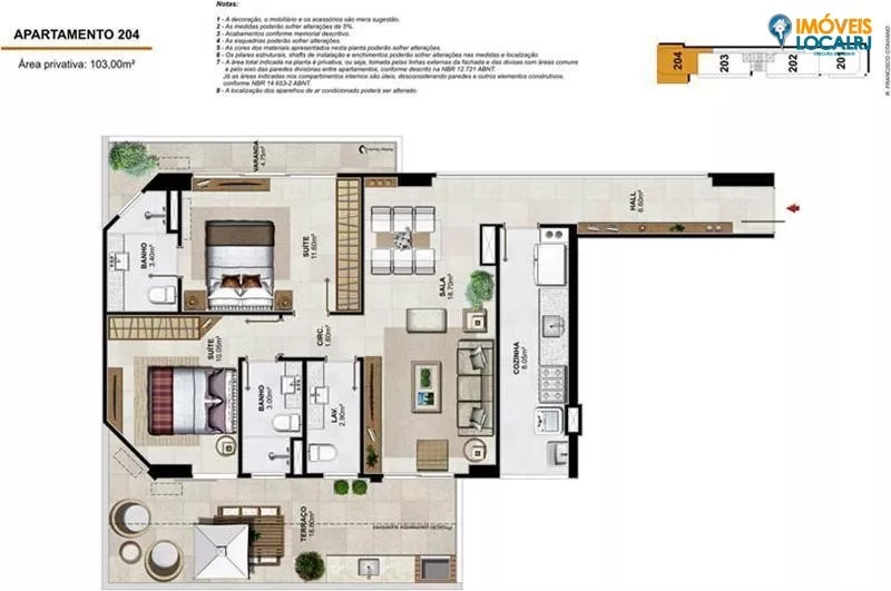 | Dormitórios: | (2) dormitório(s) sendo (2) suíte(s) | |