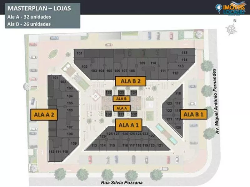 Número de unidades: 93 lojas e 230 salas comerciais (sendo 52 lojas e 41 sobrelojas)Número total de vagas: 348 vagas, sendo 263 no subsolo e 85 no térreo.Número de vagas para motos: 24 vagas.