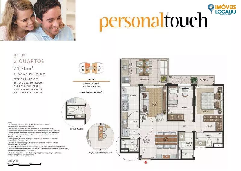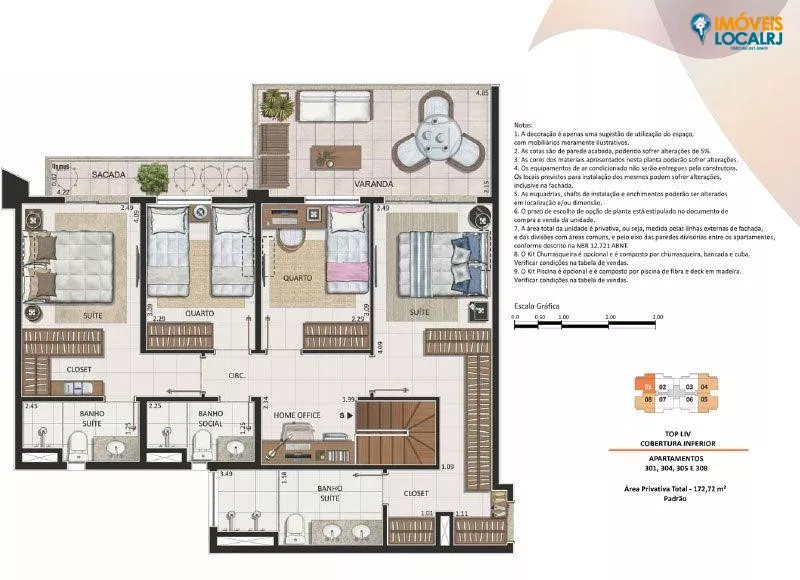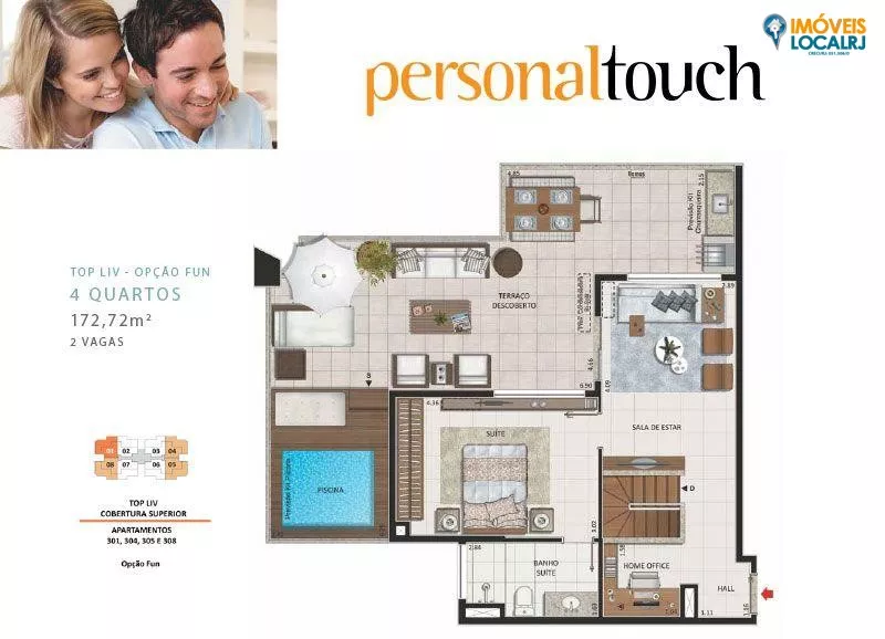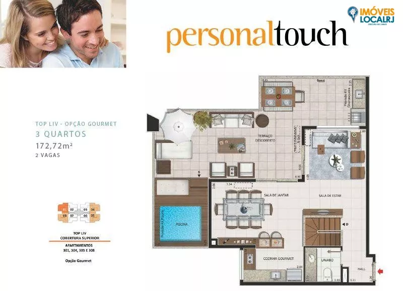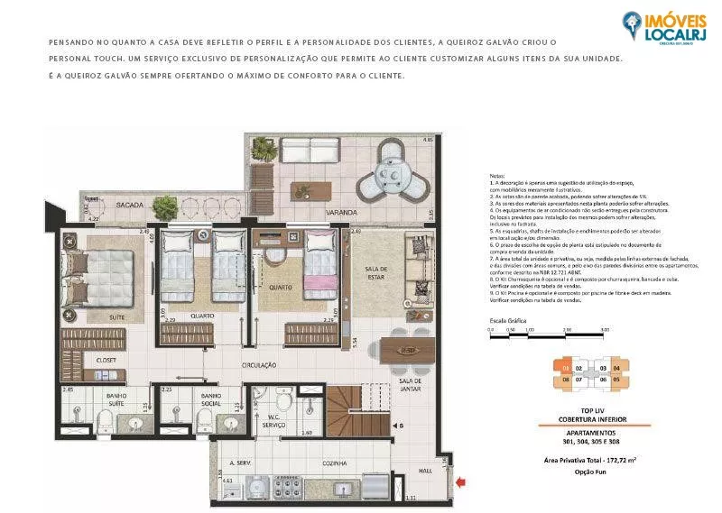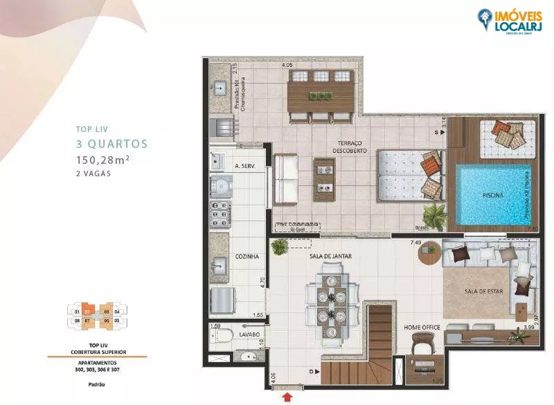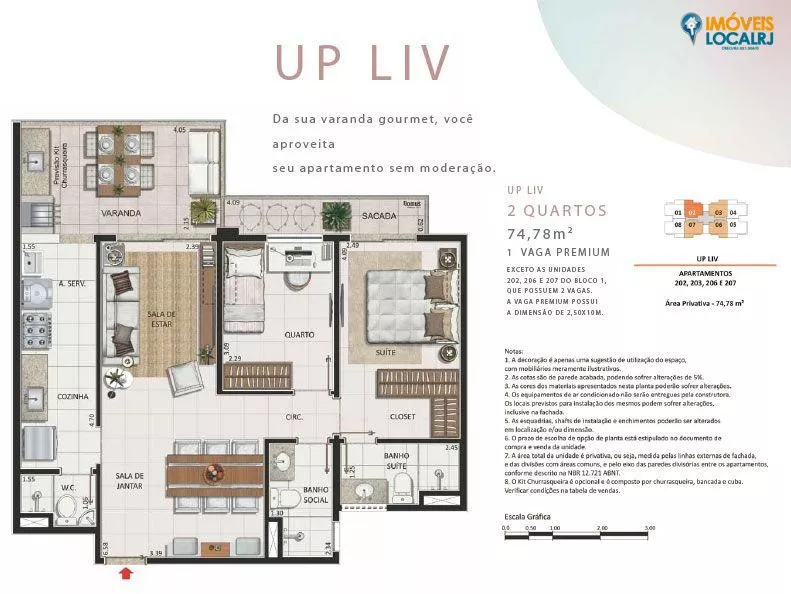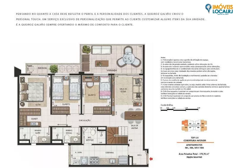 Unidade 202 | 203 | 206 | 207 – 74,78 m² Top Liv Unidade 301 | 304 | 305 | 308 – 172,72 m²