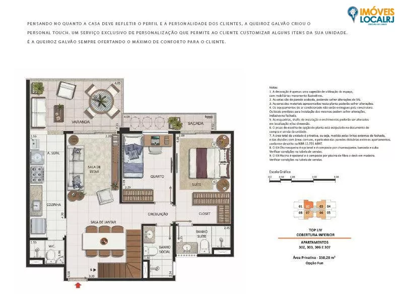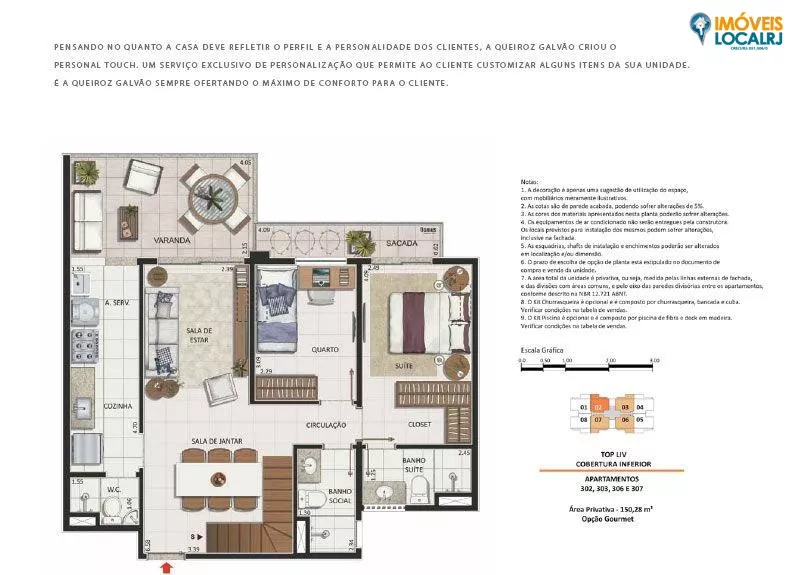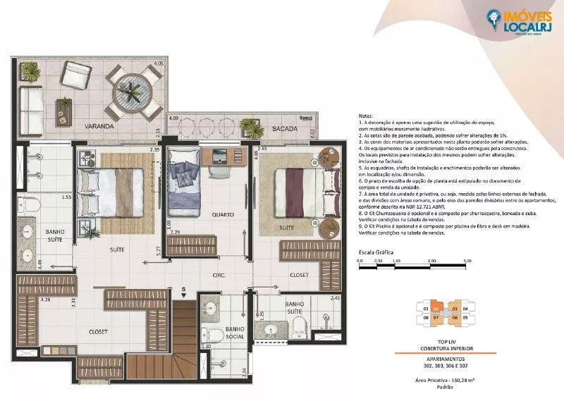 Unidade 302 | 303 | 306 | 307 – 150,28 m²