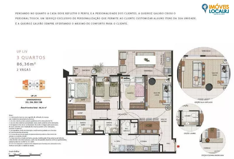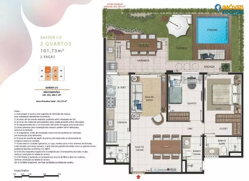Unidade 102 | 103 | 106 | 107 – 101,73 m² Up Liv Unidade 201 | 204 | 205 | 208 – 86,36 m²