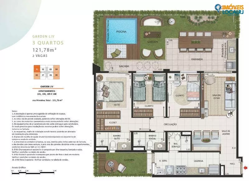 Garden Liv Unidade 101 | 104 | 105 | 108 – 121,78 m² (o bloco 1 não possui 107 e 108)