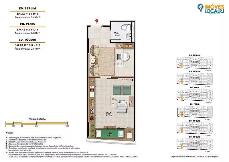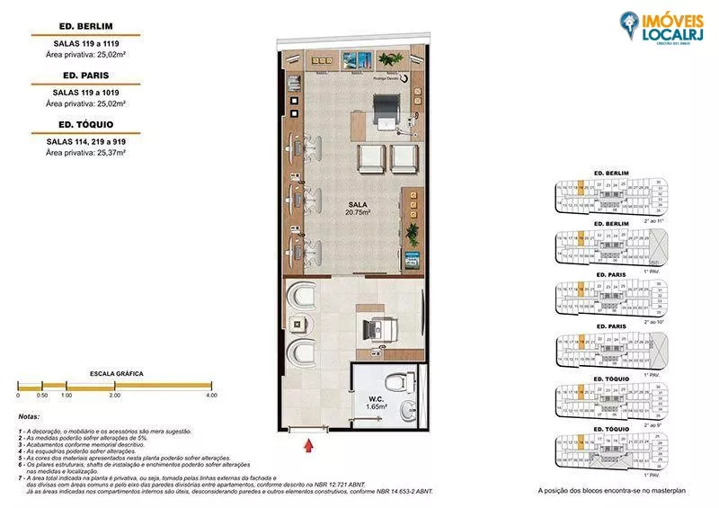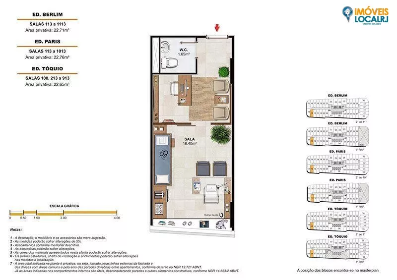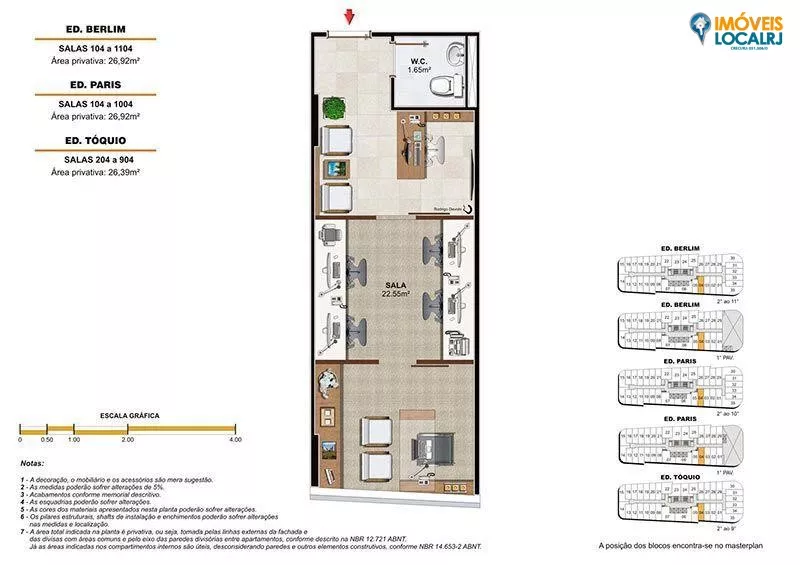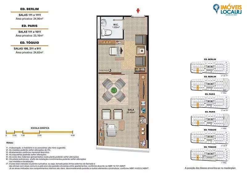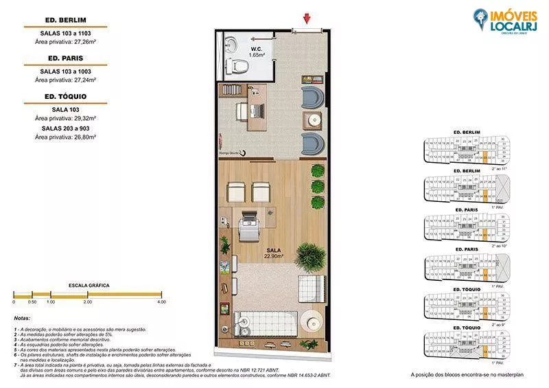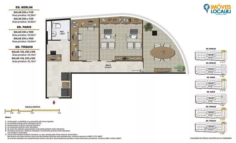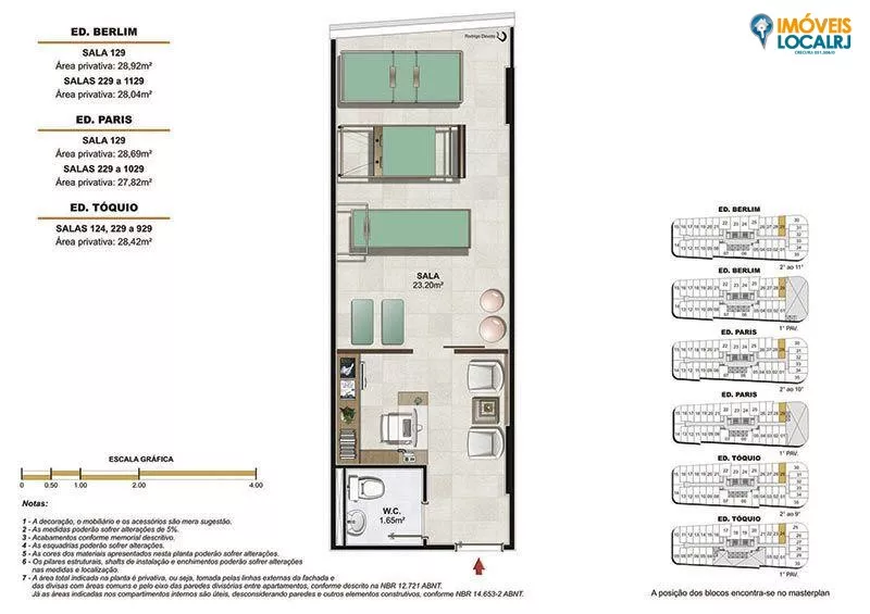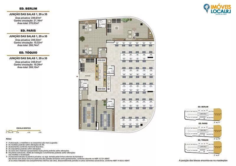 ptHe office - eDifÍcio tÓQUio• Área média das unidades: de 22 a 43m²• Total de unidades: 310 unidades, sendo 30 salas no 1° pavimento e 35 salas no tipo• 9 pavimentos• 4 elevadores no núcleo central
