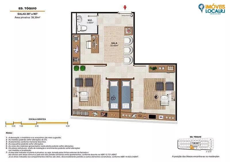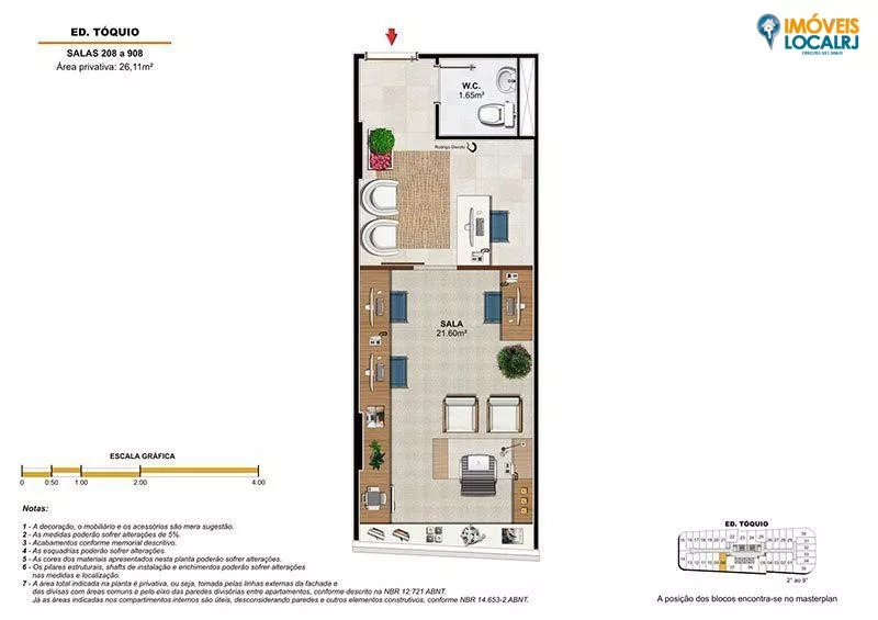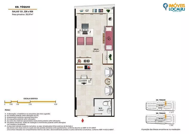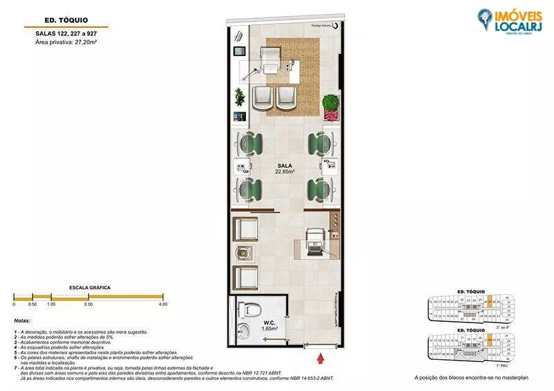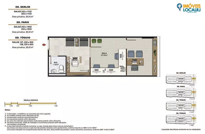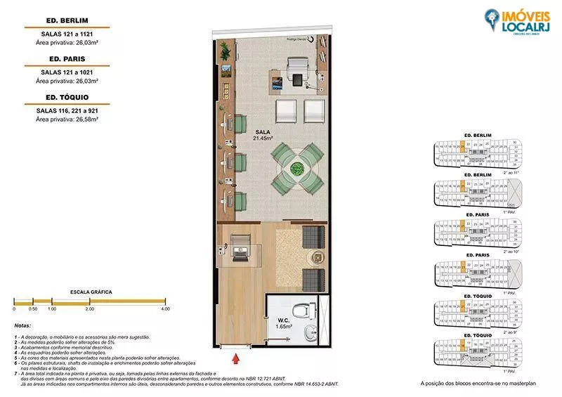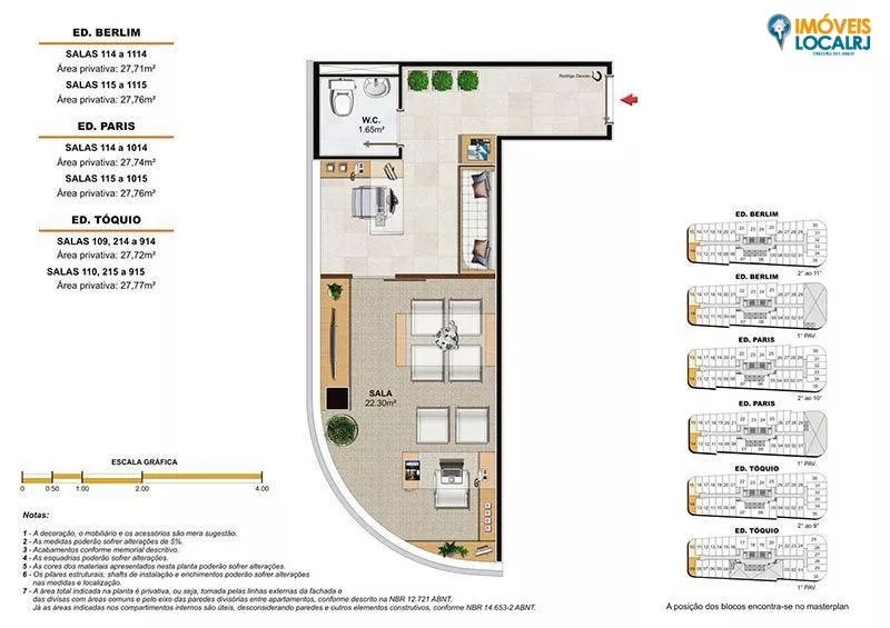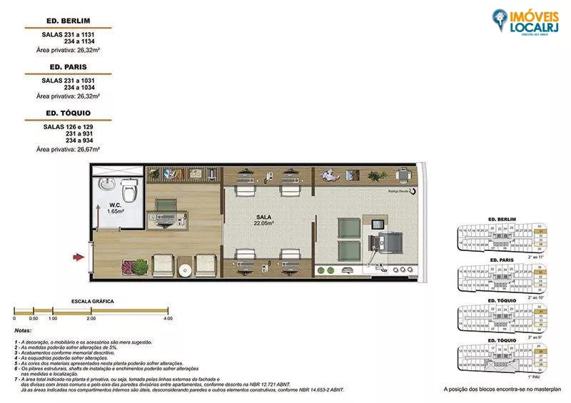 ptHe office - eDifÍcio tÓQUio• Área média das unidades: de 22 a 43m²• Total de unidades: 310 unidades, sendo 30 salas no 1° pavimento e 35 salas no tipo• 9 pavimentos• 4 elevadores no núcleo central