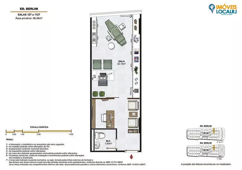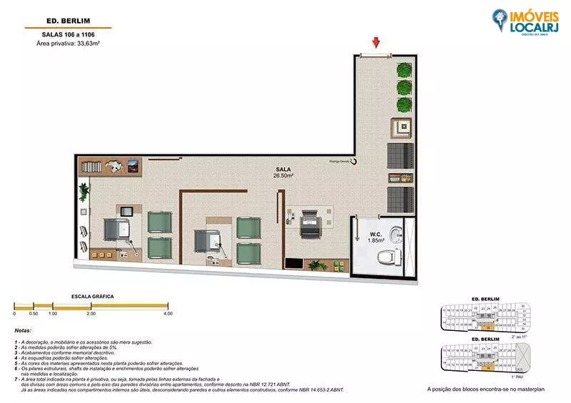 ptHe office - eDifÍcio Berlim• Área média das unidades: de 20 a 43m²• Total de unidades: 379 unidades, sendo 29 salas no 1° pavimento e 35 salas no tipo• 11 pavimentos • 4 elevadores no núcleo central e 2 elevadores do térreo para subsolos
