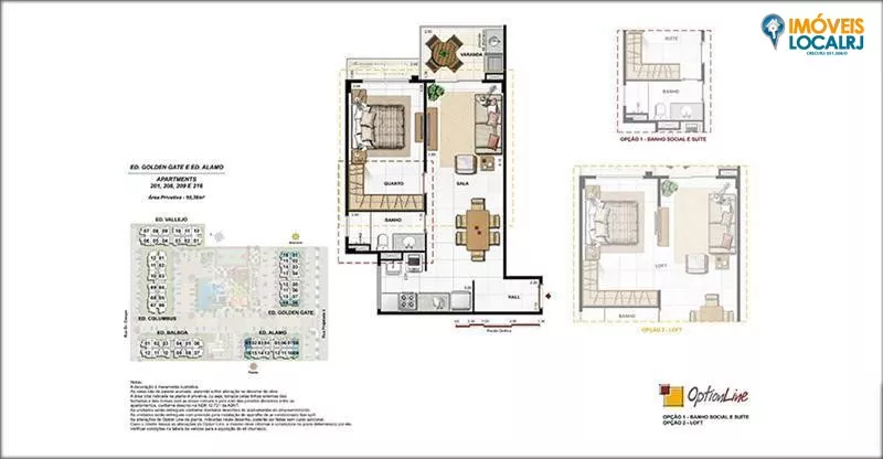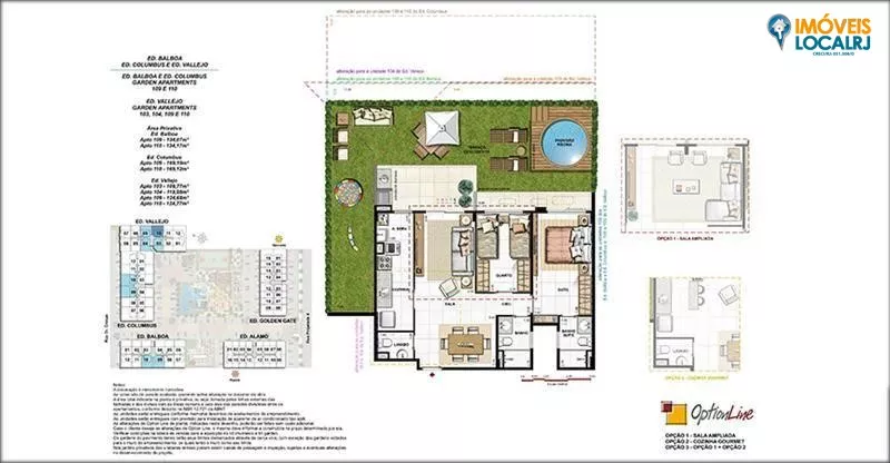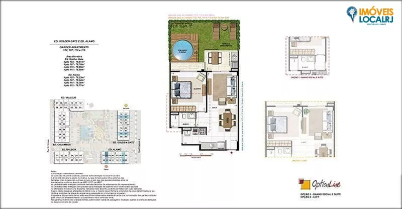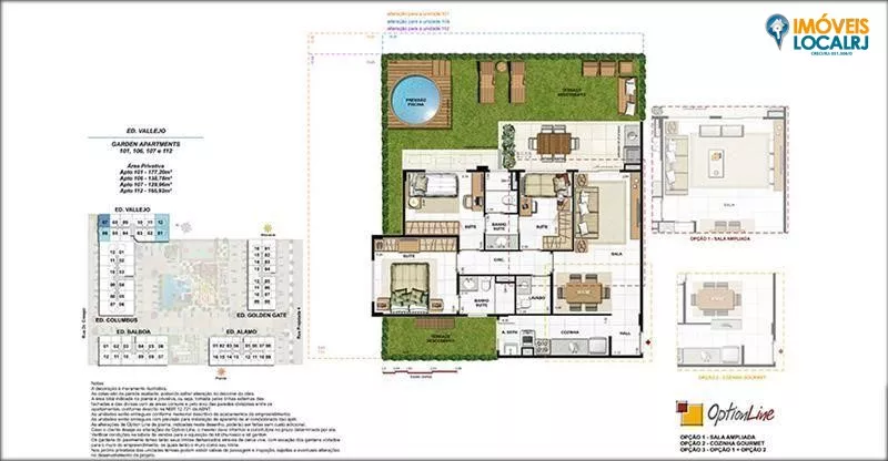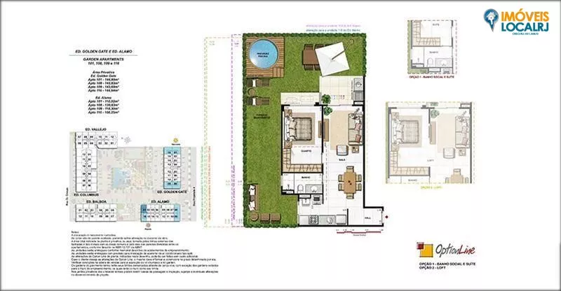 Option Line:• Opções de plantas sem custo adicional* • Opções de acabamento com pagamento facilitado ao longo da obra • Opção de compra de kit churrasco (composto por churrasqueira elétrica, bancada e cuba) nas varandas dos Garden Apartments, Apartments e Penthouse* • Opção de compra de kit terraço (composto por churrasqueira convencional, bancada, cuba, piscina, deck e ducha) nos terraços das Penthouses* • Opção de compra de kit garden (composto por piscina e deck) nos Garden Apartments* • Opção de compra de fechadura eletrônica na porta social das unidades autônomas*