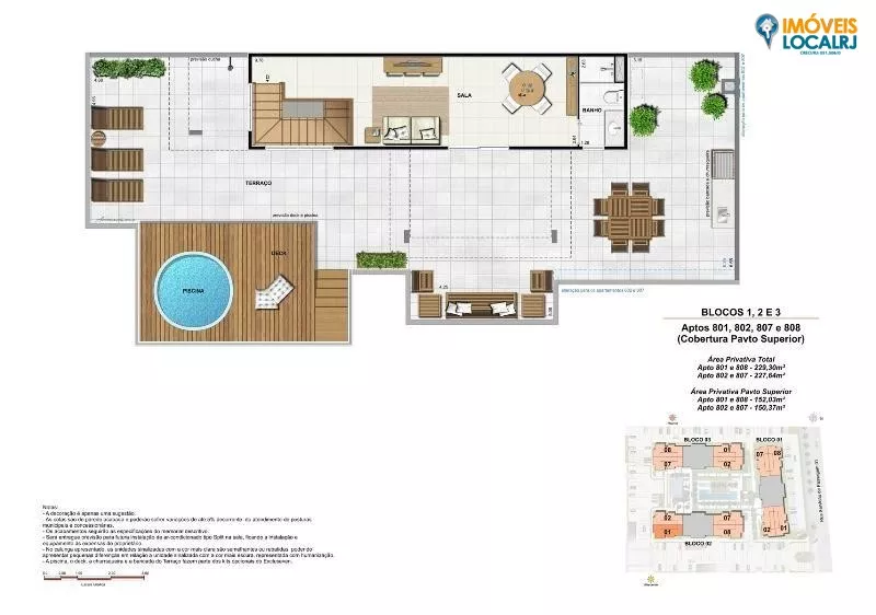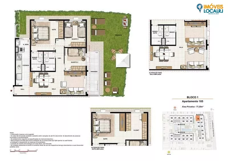 PLANTAS 3 quartos – 77 a 229 m² (96 unidades sendo 2 padrão, 12 unidades térreo e 12 unidades de cobertura duplex) 2 quartos – 58 a 64 m² (186 unidades) Opção de Sala Ampliada Opção de Quarto Ampliado LAZER: Brinquedoteca; Salão de Festas Infantil Playground; Fitness; Quadra Poliesportiva Espaço Gourmet; Salão de Festas Adulto; Praça de Festas; Churrasqueira e Forno de Pizza; Repouso com sauna; Piscina Adulto; Piscina Infantil; Deck Molhado; Solarium. DIFERENCIAIS: Edículas da área de lazer com telhado verde, permitindo mais conforto térmicoÁreas decoradas e equipadas para a diversão de toda a famíliabr; Área de lazer externo centralizado no condomíniobr; Previsão de infraestrutura para Split nas salas; Medidores de Água individualizadosAutomatização dos portõesbr; Infraestrutura para sistema de câmeras e segurança perimetral; Área de identificação para pedestrebr; Guarita com vidros blindados Realizadores:Even