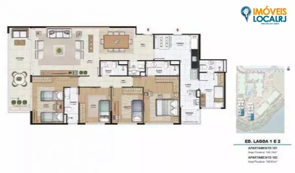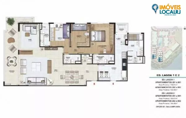 Plantas flexíveis e otimizadas com vista frontal da Lagoa de Jacarepaguá