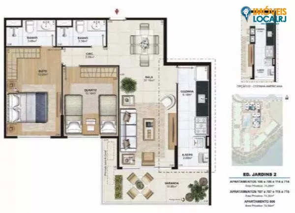 | Dormitórios: | (2) dormitório(s) sendo (1) suíte(s) | |