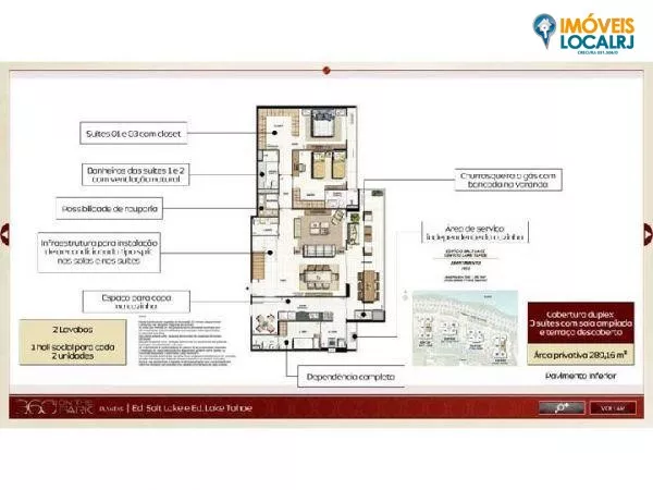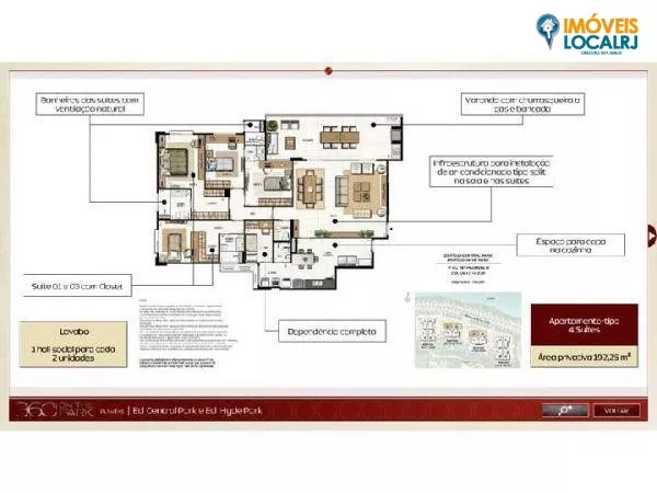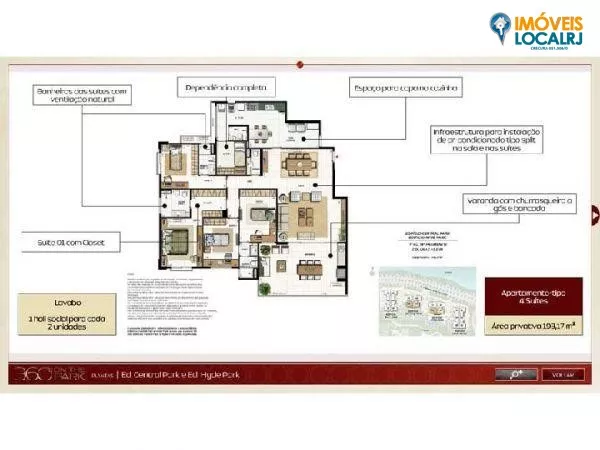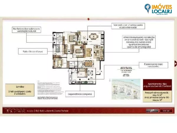 Metragem: Blocos 1 e 2 = 192,25m² a 193,17m²