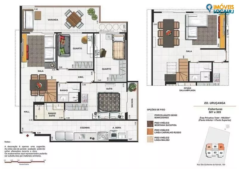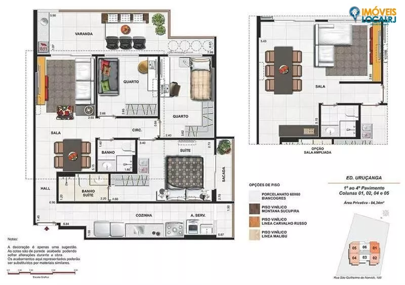 p2 quartos (65,88 e 69,64m²) / 3 quartos (84,34 m²) / Coberturas (130,35 a 167,73m²)Realizadores: FMac